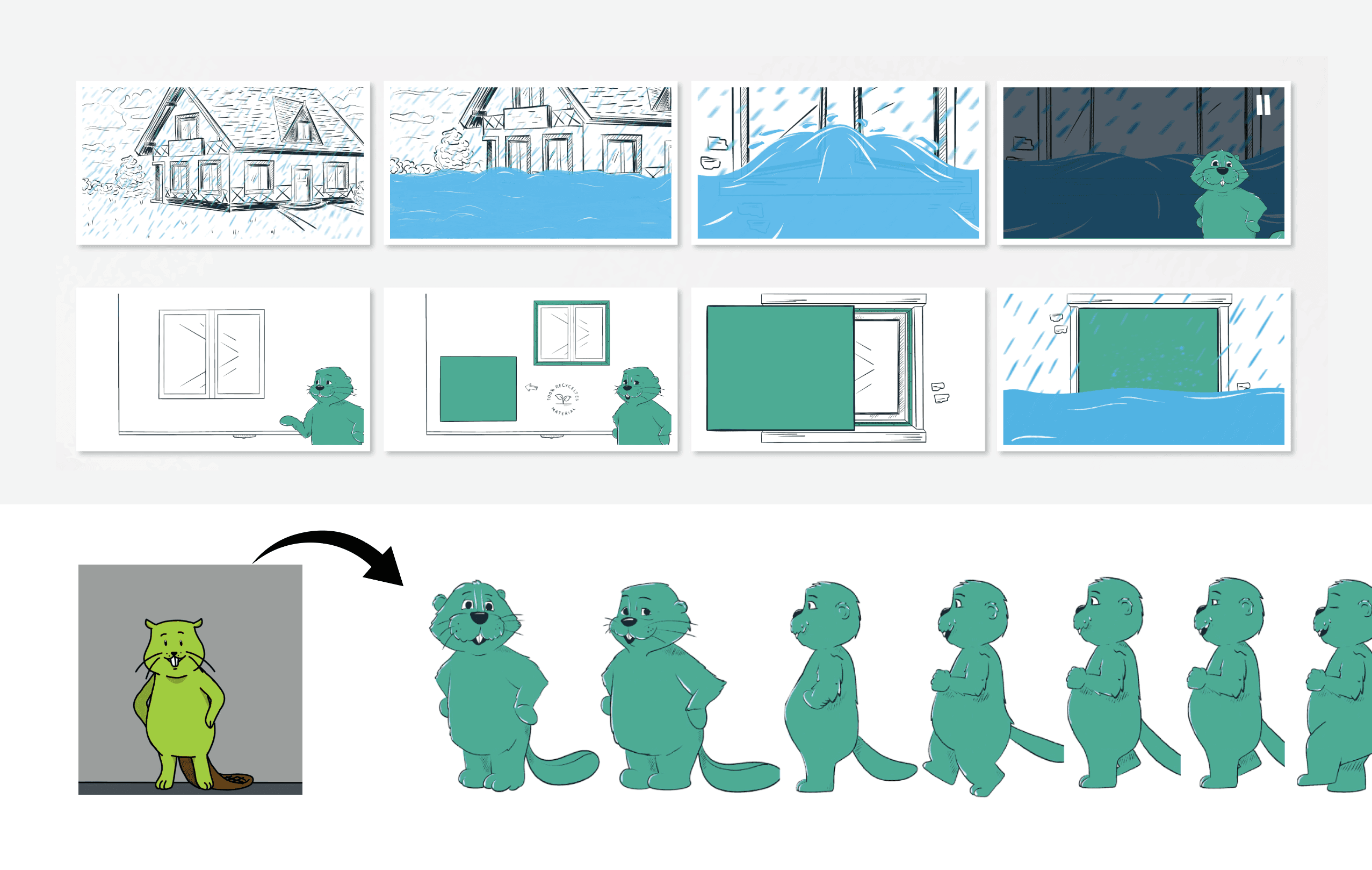 Für Waterblokk gestaltete ich eine animierte Erklärsequenz, die ein mobiles und nachhaltiges Hochwasserschutzsystem verständlich vermittelt. Auf Basis eines bestehenden Skripts passte ich den visuellen Stil an die neu entwickelte Corporate Identity an und erweiterte das Video inhaltlich und visuell. • Stilistische Anpassung an neue CI • Erweiterung des Storyboards (mehr Szenen & Inhalte) • Animationserstellung in Procreate • Sound-Integration • Neugestaltung der Figur „Bob der Biber“ • Illustrationen für die Website
