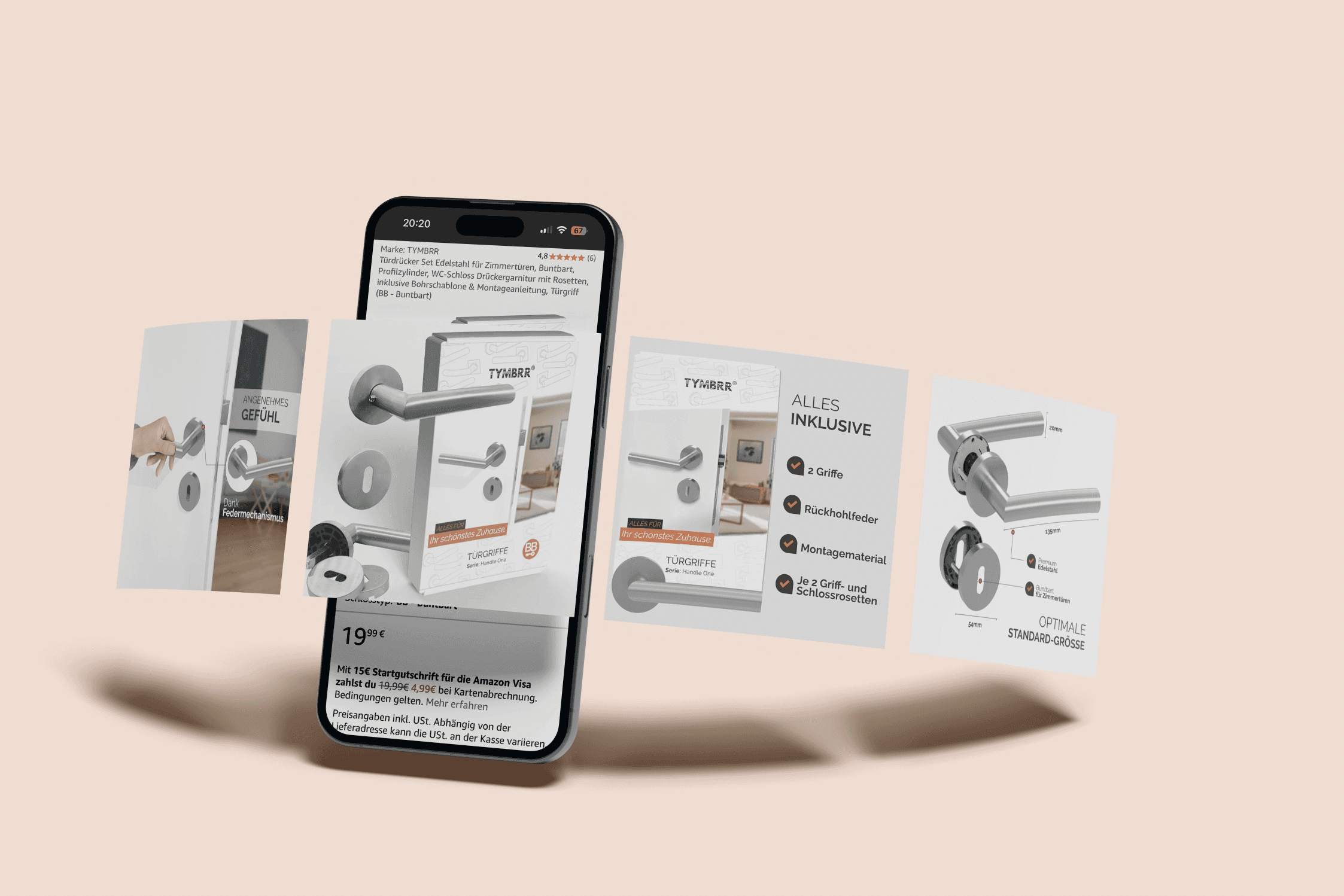 Für die Marke Tymbrr gestaltete ich ein DIY-Magazin für das Produkt Tymbrr Sticks, das den Kund:innen als Anleitung und Inspirationsquelle dient. Ziel war es, das Produkt durch visuelles Storytelling verständlich zu erklären und gleichzeitig die Markenidentität konsequent zu transportieren. • Gestaltung im Corporate Design der Marke • Illustrationen für alle Anleitungsschritte • Layout & Design des Magazins (Adobe InDesign) • Visuelles Storytelling entlang des Produkts Zusätzlich erstellte ich für weitere Tymbrr-Produkte (z. B. Türdrücker) Amazon-Produktvisuals und A+ Content zur Verkaufsunterstützung. • Amazon-Produktvisuals • A+ Content für den Online-Vertrieb